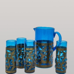Blue Sapphire Handblown Caged Drink-ware Set | Vintage circa 1960's