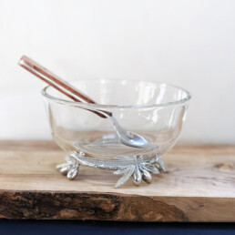 Handblown Glass Bowl + Olive Pewter Wreath
