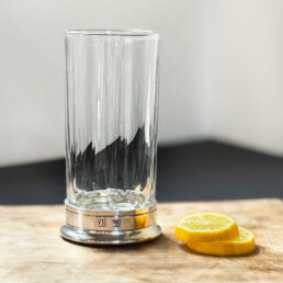 Handblown Highball Hatched Glass + Pewter Base