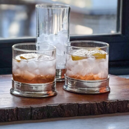 Handblown Double Old Fashion Tumbler + Pewter Base