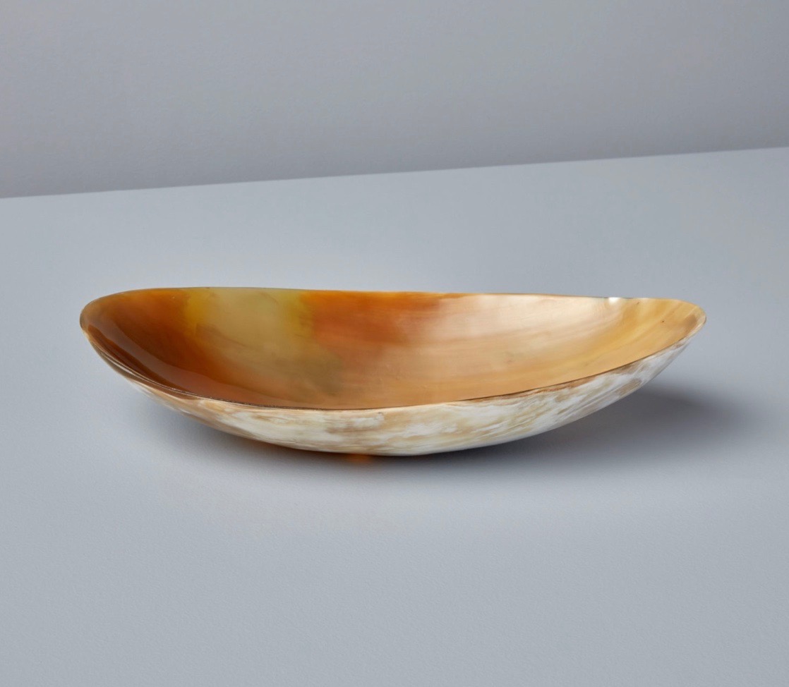 These earthly, decorative organic-shaped bowls are the perfect accent to almost any area of your home. Each horn bowl is handcrafted, making each oval unique in both its coloring and shape.