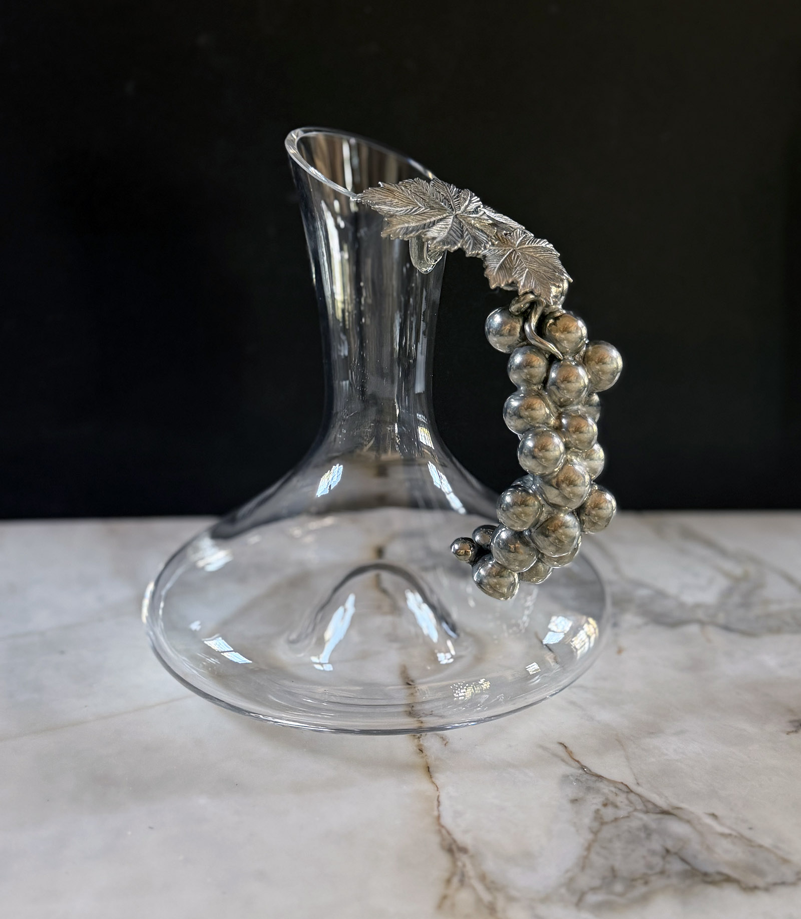 Crystal Wine Decanter + Pewter Grape cluster Handle