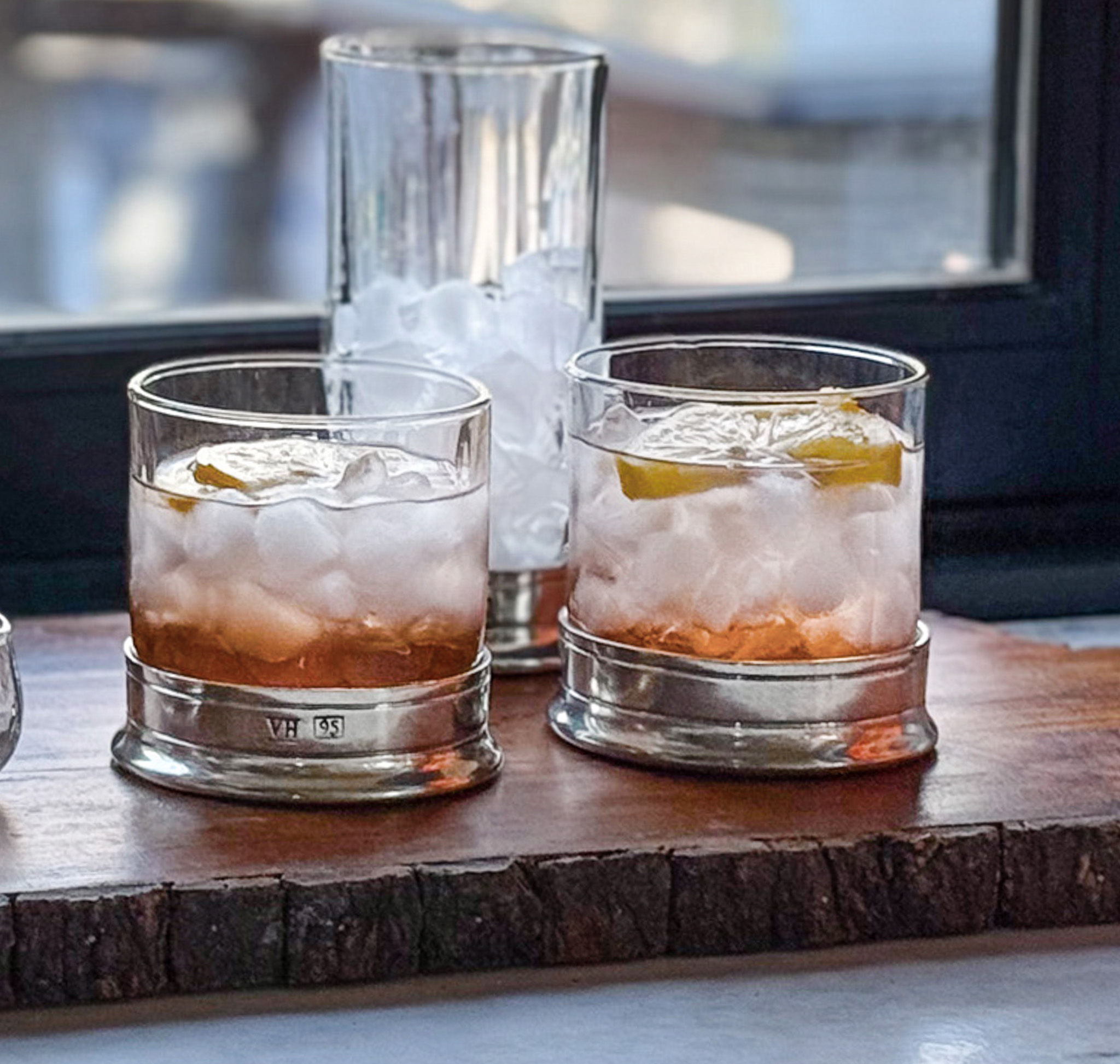 Handblown Double Old Fashion Tumbler + Pewter Base