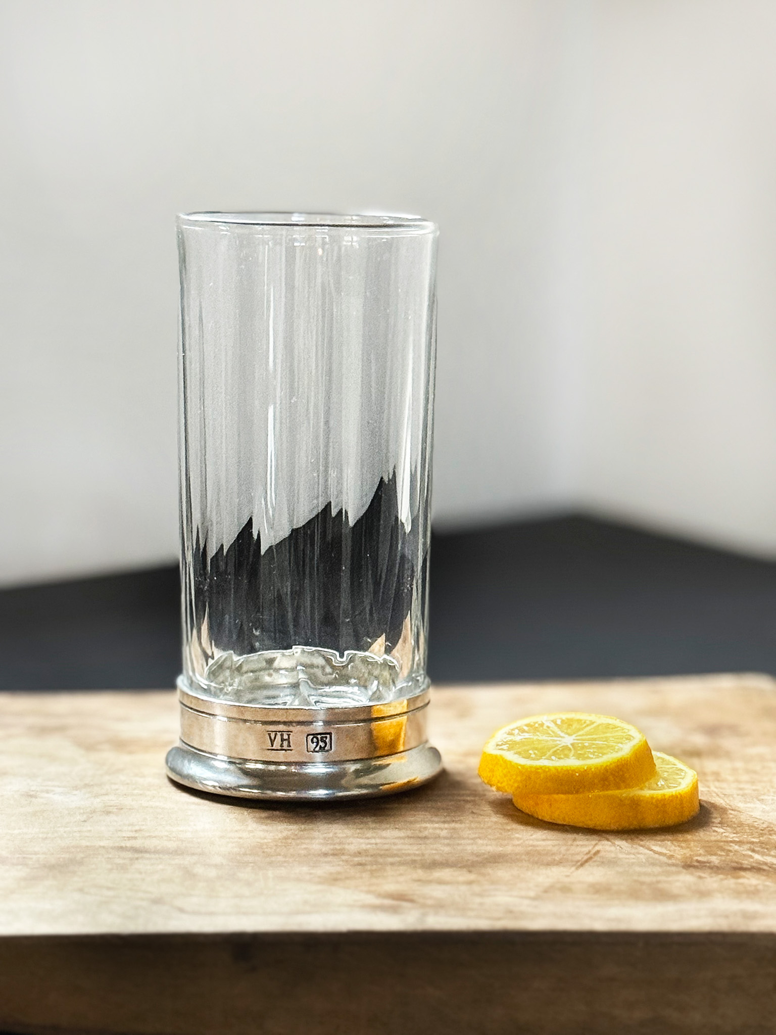 Handblown Highball Hatched Glass + Pewter Base