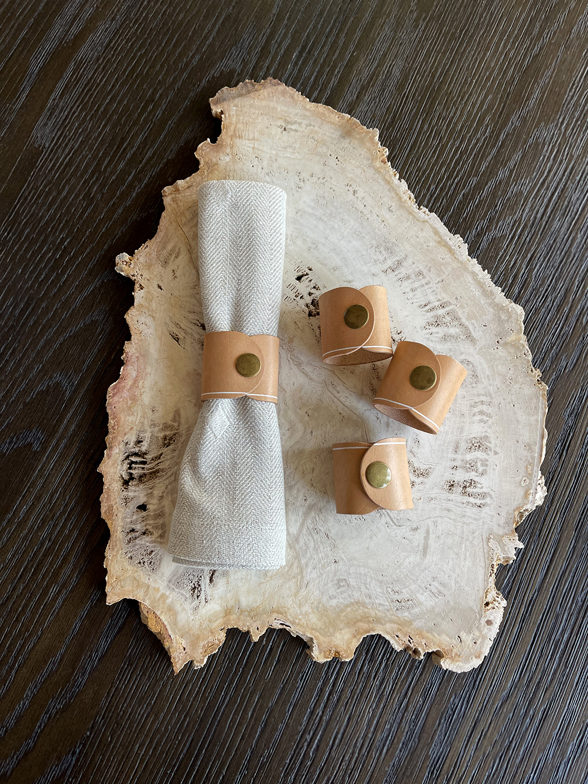 Handcrafted napkin rings made of Italian veg tanned leather with snap. Hand-carfted in Argentina.