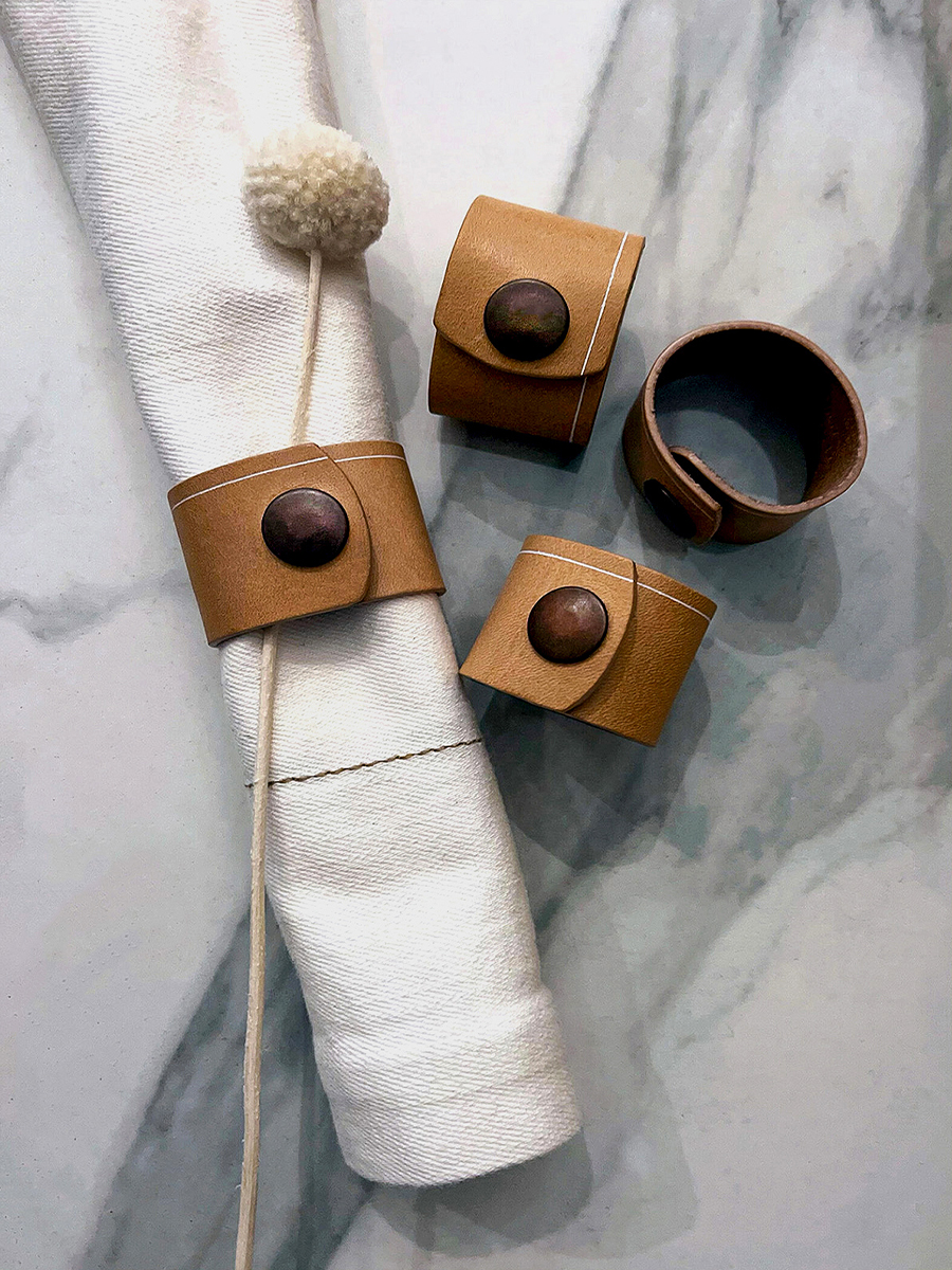 Add a modern, relaxed yet sophisticated aesthetic to your table with our handcrafted leather napkin rings.