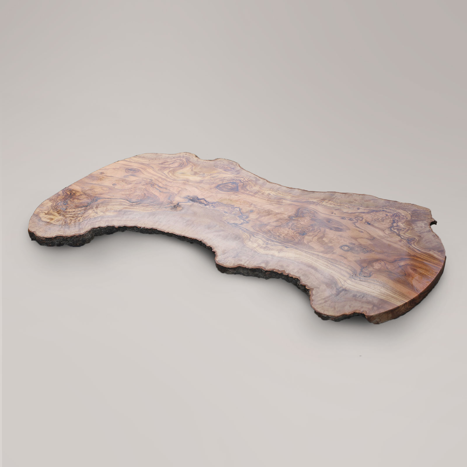 Olive trees are considered sacred to the Tunisian culture, thus artisans use wood only from non-producing, aged, olive trees. Extremely hard wood and durable, each wood board is unique in its shape and stunning markings.