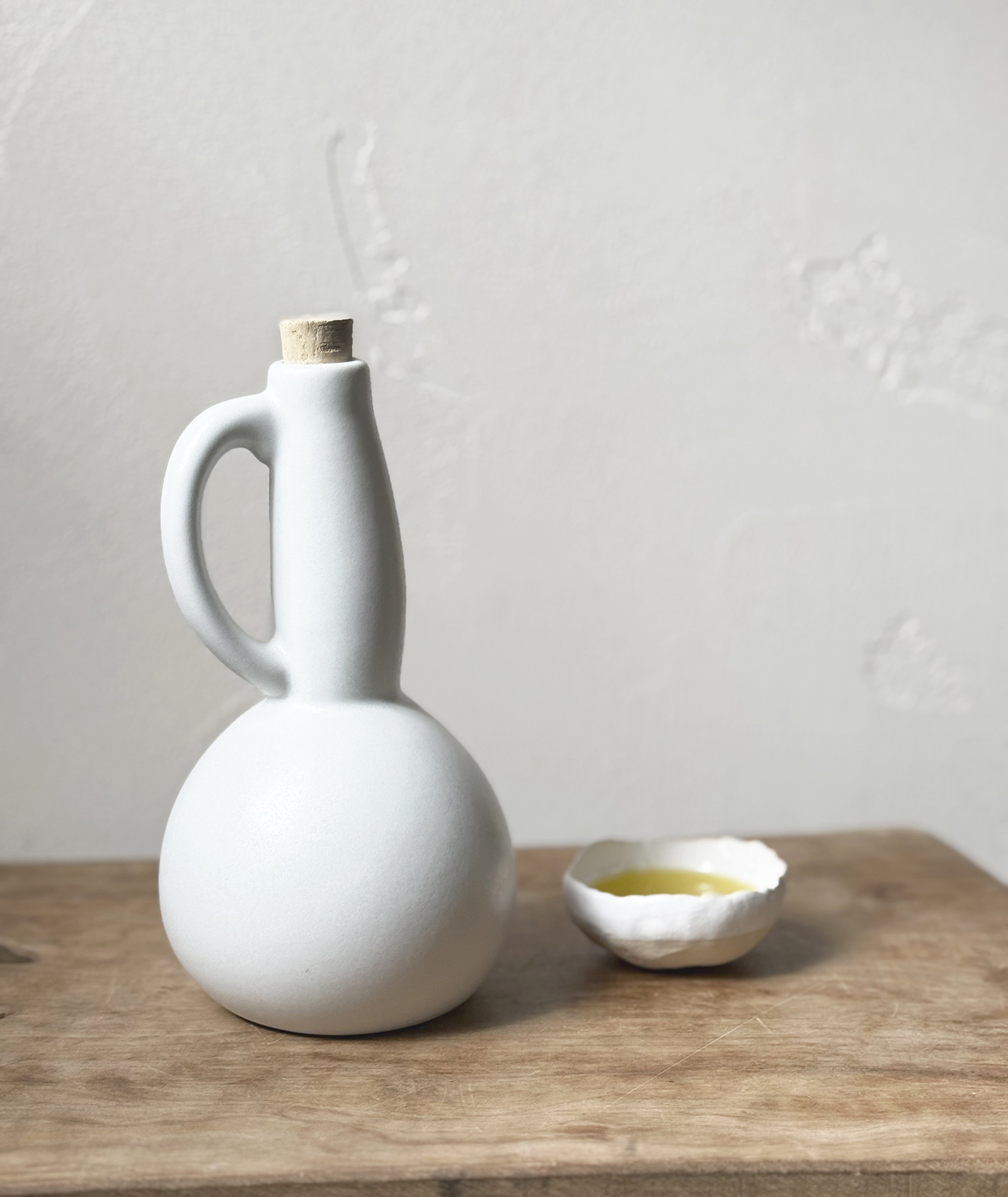Crafted by a Tunisian maker in fragrant gardens along the Mediterranean Sea. Perfect for storing and serving your favorite oils, this bottle adds style and charm to your countertop.